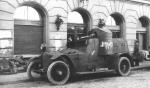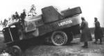 A latvian Garford-Putilov "Laplesis", captured by german and russian Freikorps-fighter. The dead body of latvian driver. The Way to Riga, 1918.