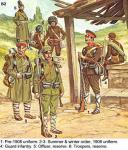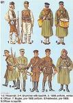 The snag seems to have sorted itself out. Please find enclosed 3 sets of illustrations of Bulgarian uniforms. B3 is from Mollo & Turner, in which I don't always have the greatest confidence. The pre-1908 uniform is described as "tobacco brown", and their pic seems much lighter. Their illustrations are all taken from contemporary photos which are then "colourised". The cut of the brown and grey-green uniforms are very similar so I wouldn't swear this is correct, and they don't specify in the text. Anyway, it seems that the Bulgarians were a motley lot as far as uniforms were concerned, so no great harm done.