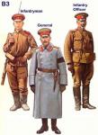 All the indications are that there would have been a mixture of uniforms and headgear, even by that late stage, as the pic of officers in Stahlhelms shows. The 1908 uniform was grey-green, the pre-1908 is described as "tobacco brown", and peace-time uniform was dark green, with double-breated tunic. In addition, many German feldgrau uniforms were issued. Some reserve units still sported fur or astrakhan hats, and all units seem to have carried the bachlik, a voluminous hood that covered the head, including the service cap. The tails of the hood were either crossed over on the chest and tucked into the belt or thrown over the shoulders.
