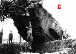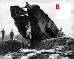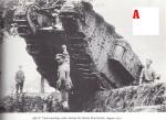 I thought that it might be instructive to see how a photo can mislead. Take a look at photo A. This is often produced and can be seen in A New Excalibur. Its very dramatic showing the officer about to unleash his tank into the fray on the Menin Road. However this is part of a larger photo that has been severely cropped to produce the most dramatic effect. This can be a bit like using a zoom lens. Look at photos B & C, these are from the same negative but give a different impression. Photo B shows that the officer is standing more to the side than might be thought on the basis of photo A. There is also an extra spectator visible and the man on top of the tank can be seen clearly. None are wearing tin hats and all are relaxed, clearly this is not that close to the front line well out of sniper range certainly. One also wonders if the officer is about to order the tank to pitch down into what is some form of pit surrounded by sandbags. One must also think about the unseen spectator the cameraman. A photo of this quality must, given the technology of the day, have been taken with a quarter plate camera at the very least and more probably a half plate. This means that the photographer would be standing up in front of the tank and using a tripod. Again something that suggests that this is well back from the fighting. Now look at photo C one can now see that photo B has also been edited to remove the trees. These show no evidence of being in an area subject to shell fire (which the Menin Road and its environs certainly where. It is also possible on both B and C to see more trees in leaf in the near distance. This is very much a behind the lines posed photo. All of this suggests that one should be very wary of WW1 action shots!