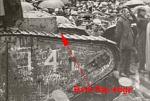 The sponson damage is also partially visible on the photo posted by Gwyn in the Old Bill thread, page 1. The damage is visible below the feet of the man seated at the front of the sponson.