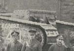 Assuming that Nelson's number is 130, at least everywhere I've been able to check, it appears that he did receive some damage but I think from a far more fearsome foe than the German Army... Tank Corp trainees! Nelson didn't go into action as can be seen from the cab front. The two rail mounting points on the cab are still in place. The only time these are on a tank is before it left England to go to France or if it went to Gaza. It would appear that they got in the way of the unditching rails, as they are never on a tank after it was fitted with rails. The damage? Check the towing point. It has been bent fairly badly, possibly while extracting another tank or while being extracted. The photo that is attached shows Nelson doing his Tank Bank duties and also in a photo shoot. The original caption was "Our monster tanks break down the belts of barbed wire and completely surprise the Hun at Cambrai". Nice stirring stuff but with the gun cover in place on the 6 pdr and no barbed wire in sight, it would appear that Nelson was doing something else... like training.