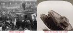 1. Doesn't effect the overall shape of the hole in 3 and 4 which is different from the other two photos 2. Yes I noticed the lines but even if you remove this we still get different holes. giving the datings it would have been removed and later put back if these are all the same tank 3. Please re read my earlier analysis of the visor damage - they are not the same.