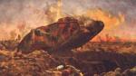 One other interesting feature of the photo is that Mother's 6-pr guns have been restored, after having been removed due to a shortage of training weapons in the spring of 1916. David Fletcher has theorized that Mother was the model for John Hassall's painting "A Tank in Action", and it's interesting to compare the painting to the photo.