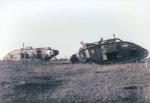 This is such a good photo I've used it as my computer's wallpaper in the past. It comes from the AWM, which identifies the location as Duncan Post, Ronssoy and the date as 29 September 1918. The tanks have been disabled by mines (the photo was taken by someone standing on another tank - the unditching beam can just be seen in the original photo but it's been cropped from the version posted here.