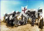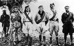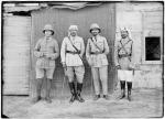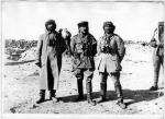 Such regular troops as the Arab army had appear to have been part of the Northern Army but one has to use the word 'regular' a little cautiously rather as one would with regard to some of the partisan armies of WW2 and perhaps substitute military dress for uniform the latter suggesting more consistency than seems to have applied. A Syrian history of the Arab armies states that the Northern army was not reorganised to incorporate these 'regular' forces until after Aqaba was taken. The force that took this port consisted of 500 mounted troops who marched across the desert (to take the port on its relatively undefended land side) and were joined by 1500 local Bedouin tribesmen once it became clear who was going to win. I attach a photo taken at Aqaba showing some of the attackers from the Northern Army. The magnificent charge shown in the film never happened. There was rather a confused melee in which Lawrence managed to shoot his own camel! A French military mission help organise the Northern Army and provided a number of its under officers - I attach a photo of these (although I don't think the gentleman with the magnificent white beard is French - see seperate photo). I also enclose a photo showing two French officers, the Minister of War for the Hedjaz (effectively Western province Saudi Arabia) and one of the senior Arab offices (he's the one in the white breeches). I also enclose three officers (with, I think a British officer in the background). I enclose what are two mounted troops wearing dish dashi with very tatty uniform jackets over the top (today western sports jackets are often worn in this way in the winter months). Finaly I enclose a photo of elements of the Southern Army escorting the Sherif of Mecca. Unfortunately editing the posting changes the sequence of the photos but I'm sure you can work it out