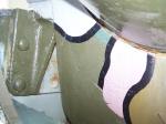 This time it's the German 15cm feldkanone. A note on the colour scheme; it's not original, obviously, but I asked about it and was told that it had been reconstructed. However, it is stored outside and the sun has been fairly harsh (and possibly the sea air as well) on the colours. I tried to get some detail shots where the sun had done the least damage. Quite a few different colours, blue-grey, pink, red-brown, and greens. The red markings are there to show battle damage.