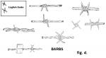 Barb making. < fig. d.> This is fairly easy, take your strands that you have braided, and tie them off on to the second nail of your jig.After determining how many barbs you need per square foot, take your wire, and wrap around the braided wire at the right intervals, and cut it at an angle with your pliers.Now this is where the collection of information will help, as I stated above, you will need to know how many times you should wrap the wire around the braided section, and whether or not the barbs are intertwined with the wire or just wrapped around it.