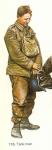 The Blandford book ' Army Uniforms of WW1' has an illustration, No 116, and the caption for it is:- Private,4th Battalion Tank Corps, Domart,France 10 Aug 1918. The battalion was identified by the blue cloth flashes on the shoulder straps and blue-painted steel helmets . . . . .