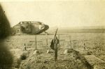 ...It served with 16th Battalion, Tank Corps in 1918 as a Male. It had a hard life, being first knocked out by a 77mm field gun at Regnicourt on 17 October 1918. Four of its crew were killed: Cpl Drewitt, and Privates Daniels, Doig and Fensome. It next appears fighting in the Russian Civil War during 1920-21 and was captured by Red Russian forces in Georgia in 1921. Now we have it in Berlin in 1945 at the end of the Second World War. That's quite a career...