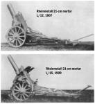 Rheinmetall's largest weapon (before their 60-cm and 54-cm Karl mortars of WWII) was their experimental 21-cm mortar, which was, in any case, not put into production as it was rejected in favour of the Krupp 21-cm mortar. The unsucessful Rheinmetall weapon was developed in two versions, an L/12 and an L/15.