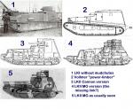 The Krupp tractor wouldn't qualify as a tank. It was a mechanised means for towing a field cannon and carrying the gun crew. Colonel Bauer knew that German horse supply was dwindling, so he was looking for a different kind of traction. As he was rather influential with OHL, his ideas collided with the light tank scheme in the struggle for resource allocation. Thus, the LK was fitted with a towing hook and blueprints were made for turretless LK limbers - as to prove that the LK would be able to fill this role as well. In August 1918, Bauer was given control over all German tank development. He now quickly realised that only the LK II was far enough in development and concentrated resources for it's production, dropping everything else - except work on the new heavy, the Oberschlesien.