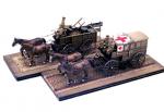 These are made by Wespe Models. They look as if they might be Wild West/Goldrush vintage, but the the left-hand one looks not unlike some ambulances I've seen in early pics of Flanders, etc.