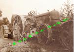Interesting MZ's photo has completely different wheels from the drawing. The drawing shows rear wheels with retractable spades (or spuds) arround the wheel rim controlled by those curved spokes inside the wheel. Versions of this type of wheel were fitted to a number of makes of heavy tractor. The rear wheels in MZ's photo clearly have no such spuds.