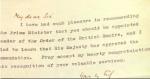 Enclosed: pics of Tank and pic of letter from Churchill informing him of his CBE.