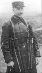Also, there are pictures of French troops carrying an odd type of potato-masher that has a cloth skirt, like an inverted parachute. It emerges that this was the Aasen, a Danish, pre-War model that was also used by the Germans, the only one to have been used by both sides.