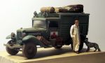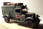 This is a (generic) model of what would be a "between the wars-era ambulance", based in an ex civilian wooden box van on a chassis similar to Ford AA or BB , or even Opel, Gaz or any non licensed copy of the Ford brainchild built in Europe for those times.