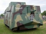 I went to the Tankfest at the Bovington Tank Museum on Sunday. A good day out. Much focus on the running Tiger I of course but great interest in the first outing of the A7V replica built at British Military Vehicles. Despite being a plywood and resin construction over a steel frame it certainly looks the part from outside. I understand that there has been no attempt to recreate the original on the inside (unlike the replica in Germany if I am right). The vehicle recreated is 'Schnuck' which, if I heard  the commentary correctly, is the one that was a Bovington in the interwar years before being scraped in WW2 (seems logical).
