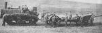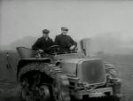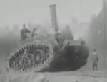 "We see two tracked vehicles put through various tests over steep inclines, muddy terrain and boggy land. There appear to be two vehicles used - one is steam powered(incorrect!) and the other petrol (?) We also see a conventional steam traction engine with wheels slipping in mud - an obstacle that doesn't hold back the Hornsby vehicle and also a team of horses pulling a cart becoming stuck in a boggy field as the Hornsby tractor passes by."