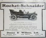 Rochet-Schneider had become one of the most significant French car manufacturers, being noted for vehicles of high quality. 1904 was to see the firm sold for 4.5 million francs, and a London-based company, Rochet-Schneider Ltd, was formed with Ł300,000 capital. However, production was to average less than 250 cars per annum and, by late 1907, Rochet-Schneider Ltd was in liquidation. At this point Théophile Schneider was to commence the company bearing his name and a subsidiary, Carburateurs Zenith was formed, which was responsible for almost half the parent firms profits for a number of years. An extensive range of cars was produced in the following years, all of high quality, together with a range of commercial vehicles.