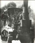 1905, Summer Roberts demonstrates Chain Track machine No. 1 informally to MTC. It's an 1896 Hornsby steam tractor converted to paraffin and fitted with 1st pattern tracks. Weight 20 tons, BHP 20.