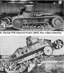 Renault FT M24/25 Kegresse, basically an FT hull with all rubber Kegresse tracks, new suspension and large front rollers some were used in Morroco where the running gear proved fragile. 12KPH, range 160KM.
