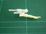 F. Glue the assembly in E to the left hand side of the barrel assembly so that it is vertical & the U section strip projects 2mm at least back behind the breech piece, To do this best the short section of rod fits snugly into the intersection of the V angle, the Breech section & the Main gun tube.
