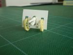 3. Also visible is he gun shield marked up. For the oval slot I drill a series of holes around the inside of the line. Then join the holes up with a scalpel. Finally filing out & evening up the oval. The marked oval should be 11mm high & 6mm max width. When filed out it needs to be 7 or 7.5 mm max width & 12 or 13mm high. The wheel slots are just cut snips & scalpel.