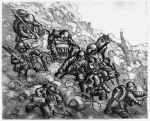 Well spotted . the painting is my tribute to Otto Dix . Its my version of his 1924 sketch. Machine Gun Squad Advancing , somme 1916 . (Its called Golgotha).