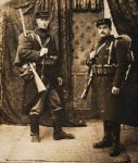 I am just trying to stirr up the uniform item, and as I want to convert/scratch a figure of a Belgian infantry man, these are helpfull pictures you posted, thanks! The picture: a well known one I presume, of a barricade, I tried to sharpen a detail where a rucksack is visible. it looks if there's a roll laying next to it. The scene itself has been photographed from at least three different angles, it could be a nice diorama for modellers actually. The sack on the man with the canteen (is that the right word?), was that a regular issue? The last picture: a Garde Civique barricade, I found the captain at the right an interesting character...Belgian beer, there's no life without it but you can have this effect after having them too often.