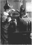Thanks guys. Yes, I imagine she is using a copper or zinc "drifter" to install the tubes/wells that take the fuse assembly. Accidents/mistakes in munitions plants tend to have fairly severe consequences so the safety levels are actually uncommonly high. On an associated note, one of the great frauds perpetrated by the state insurer (the statutory insurer for Worker's Compensation) in these parts was to classify Powdermonkey as a hazardous occupation (with a premium to match). I mean those guys can only make one mistake, which they mostly decline. Same with munitions plants - either they're safe or they're a very large hole in the ground. Safety is a state of mind which is wonderfully concentrated by the real and constant possibility of imminent and spectacular demise.
