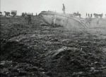 I think this is the tank in question. David Fletcher wasn't able to shed much light on the markings when I asked him about it. If the markings on the bow are a name, the lettering would seem to be much larger than that seen on other Arras tanks, such as "Lusitania" and "Iron Duke". I can't recall seeing any photos of MkI or II tanks in action at Arras without track extenders, although they seem to have been stripped from some of the wrecks after the battle.