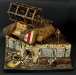 Hello, and thanks for your response. The figures are 120mm, a combination of Model Cellar and Verlinden. The German in the trench on his back is a model cellar conversion. The ammo pouches with the kit were larger than they should, so I scratch built new ones, the head is from my remnants box off old stuff. The bandage on his hand is done in foil.