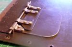 The hinges are made to scale 3/8" (9.5mm) thick, but look too thick. I'll skim them to scale 5/16" (8.0mm), 2mm model size and see what they look like. The next size down would be 1/4", 1.6mm model size, which I think can not be right.