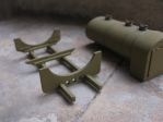 I saved the set of "artillery type" (wooden spoked) wheels to build a scratchbuilt trailer for the bowser. A few months ago I visited a horse racetrack (of all places!) that had a large shed with old tools and appliances, and there was this old water bowser trailer, with BIG spoked wheels and a sturdy iron beam "chassis". I was told it was used -adding to it a special device- to water the dirt tracks and keep the dust settled down during races.