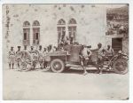 It appears that the writing on the side says "12th Battery", "L.A.M.B. DE", and "LC^0807". At the risk of exposing my ignorance of period uniforms, the gent at the left appears to be a German while the rest of the soldiers appear to be Turks. Is this correct? Also, can anyone identify the badge on the car door behind the German(?) soldier?