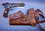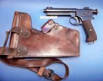 I have bought Hecker & Goros' Austrian Artillery Officer (1917) and wondered what the sidearm is that he's carrying.  It has a long holster with what appears to be a magazine pouch attached to the rear.