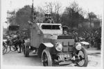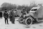 This is an interesting pic. The caption reads "BelgianarmouredconvoyinParis", but the cyclists are particularly striking. They seem to be wearing a similar outfit to that of the AC crew, maybe a little shorter. AFAIK the Carabinier Cyclists gave up their green uniforms and were issued with khaki in 1915, including a short khaki greatcoat. There does seem to have been, very briefly, an interim, Yser-type uniform with a green kepi. Anyone any idea where these cyclists fit in? Regular Cyclist Battalion or a separate unit attached to the ACs?