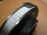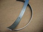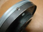 I first lathed the large diameter metal blank of the profile of the inside of the track to suit the running gear of my model, this can be made to suit any type of running gear. ie one groove, as with mine or two etc. I then made a step for the outer shells to fit around. The shells were made from 1.8mm mild steel flat strips that had the groves milled on a horizontal milling machine, unfortuantly i only had flat edged cutters, not rounded ones that would have gave a bit more realisim to the track finish, but thats not the end of the world. The outer shells were made in two pieces. At his stage i did not add the rivets, formed by a fine center punch but these will be added at a later stage.