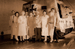 The place looks like the original place that Mephisto was displayed on the South side of the Qld museum. Mephisto was moved to the South Bank museum in 1986. My guess is that it's an image of the German team who measured Mephisto with Qld Museum helpers.