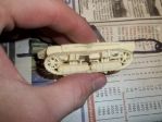 Work began at last on my A7V Trencher. I have the chasiss ready, and tracks at proper length, (I started with the MGM Uberlandwagen as a conversion base)