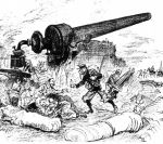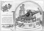 He drew one marvellous illustration of a war correspondent at the front near a giant gun, reporting over a telephone link. In another, a family sits at home watching a kind of television (he called it the telephonoscope, a weird combination of an Edison telephone loudspeaker and projected picture on a big screen) showing news coverage of some far away skirmish in an outpost of empire.