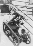 I could be wrong but it looks like a radio controlled bomb disposal unit [experimental type in testing - no disposal arm, camera or gun fitted], just in such a grainy, low rez scan of a piddly little source image -possibly from a 1970s book - that it 'looks' a lot older than it is.