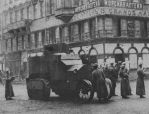 In the program "The great War and the shaping of the 20th century" Part 5 Mutiney there are a couple of armored cars in film clips of the Russian revolution One includes a half track with a can sticking out of the rear. And some others i can't identify. the other shortly afterwards looks like it might be a Putilov-Austin. Can anyone help me ID them? Thanks in advance.