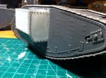 The period images included here were found on the internet and are for discussion purposes only. The kit is the 1/35th Emhar Mk.IV male kit converted using plastic card and Grant Line domed head rivets. Paint is Tamiya XF72 JGSDF Brown, this is the first time I've used this paint and I'm quite happy with the way it's turned out. Tracks are injection moulded individual plastic links from Model Cellar and work a treat, so much better than the original kit tracks I doubt I'll ever use the kit supplied tracks again! Stowage is a mix of resin and plastic, the oak barrels come from the old Historex accessories set while the 44gal drum is Italeri (I'd never seen a 44 in use during WW1 till I came across this image... ) The replacement Lewis gun is a Wing Nut Wings item and is perhaps a little too long. I'm about to apply pigments and mount it on a display base but before I do that I'd like to ask for some feedback on areas that could stand some refinement - replacement - reworking or removing !!! Feedback, good bad or otherwise is eagerly encouraged, so let rip folks.