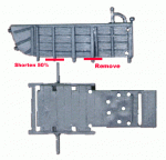 Now - a couple of snags: one peg doesn't align, but you can get away with removing it; the peg above the axle needs shortening. See picture. Driver's seat a bit wonky - needs filing to fit.