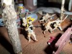 As for shading, I'm using khaki with a spot of black mixed in for the first round, then chocolate brown (Humbrol 98) for the darker nooks and crannies. This latter works on the webbing and equipment's deep shading, too, so it allows for a nice overall result on the finished article. The only problem is that Humbrol's khaki is horrendously unco-operative and soft blending is difficult.