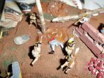 As for shading, I'm using khaki with a spot of black mixed in for the first round, then chocolate brown (Humbrol 98) for the darker nooks and crannies. This latter works on the webbing and equipment's deep shading, too, so it allows for a nice overall result on the finished article. The only problem is that Humbrol's khaki is horrendously unco-operative and soft blending is difficult.