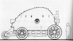 Came across this depiction of what is described as James Cowen and James Sweetlong's 1855 Crimean steam chariot thing. No details of origin of drawing. Apparent quote from patent: "This invention consists of an improved locomotive battery to be used in the field of battle, and is so constructed as to exert a most destructive force against the enemy, while protected from damage in return."