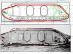 As for CG, the Wilkes drawing (the external view) is more accurate: the photos in the aforementioned book show the Bovington Mk IX resting on the ground (where the left track rollers are missing/collapsed?) from around the eighth track roller at the front (counting from the front) to around the nineteenth at the back. The Wilkes drawing seems about right for the front contact point, but the rear one needs to be moved backwards towards the rear edge of the second side door, which is roughly at the nineteenth track roller.